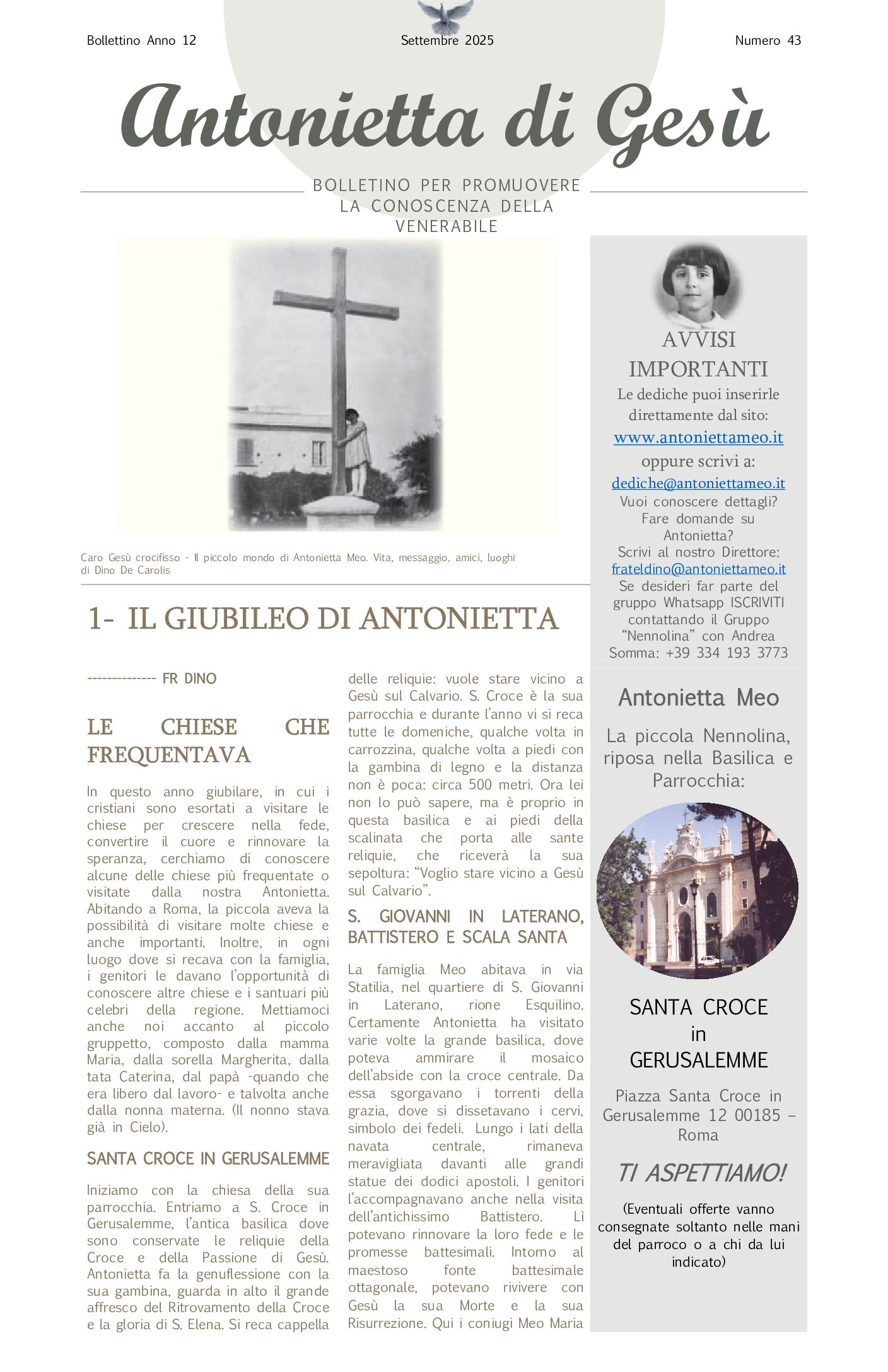 I BOLLETTINI SONO SCARICABILI DAL SITO – A RICHIESTA VENGONO TRADOTTI NELLA LINGUA DESIDERATA, SCRIVI A: bollettino@antoniettameo.it